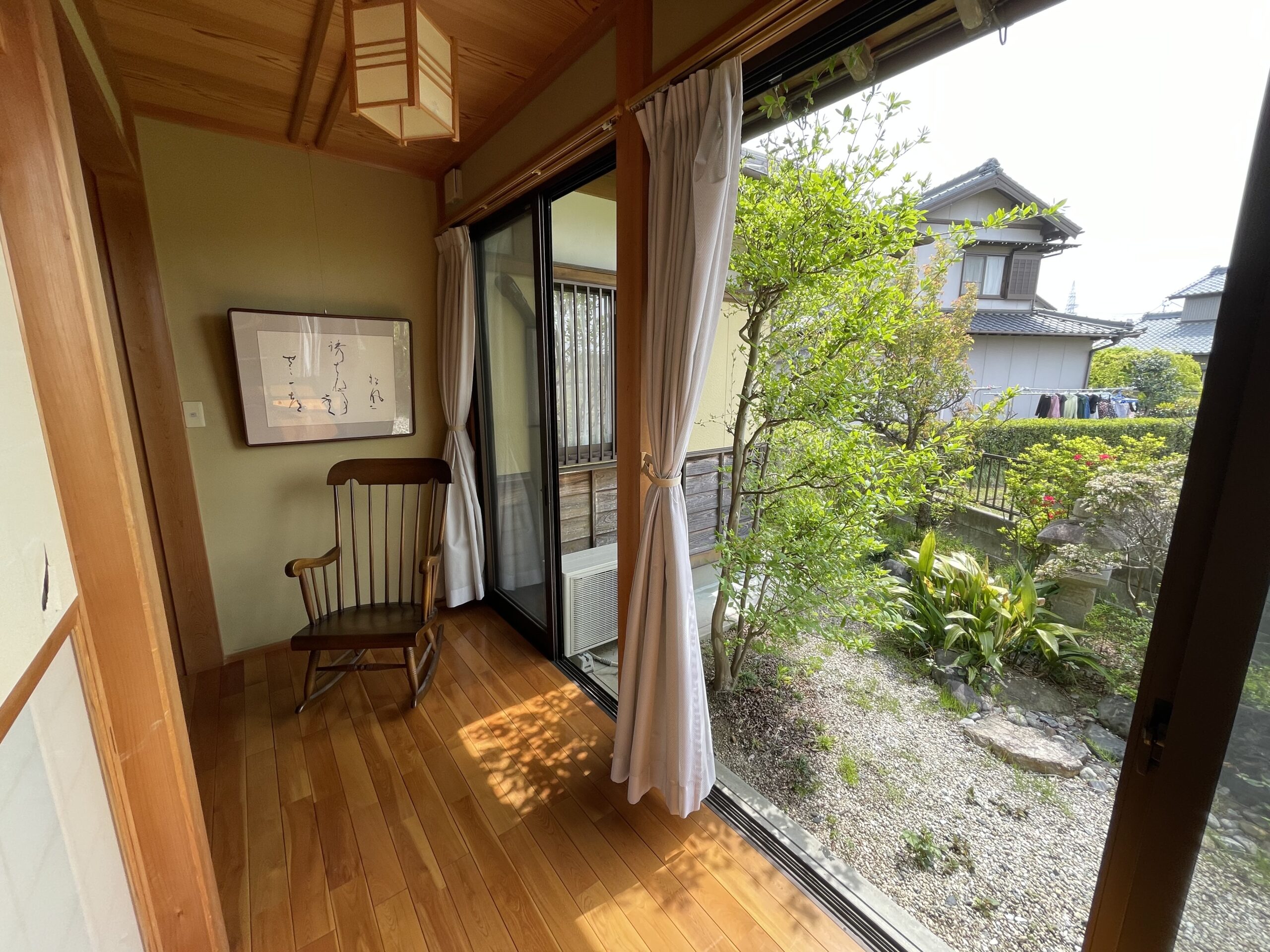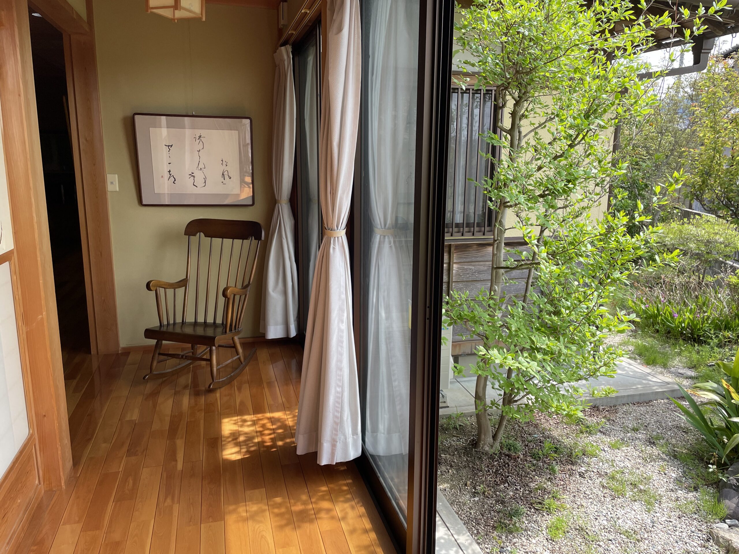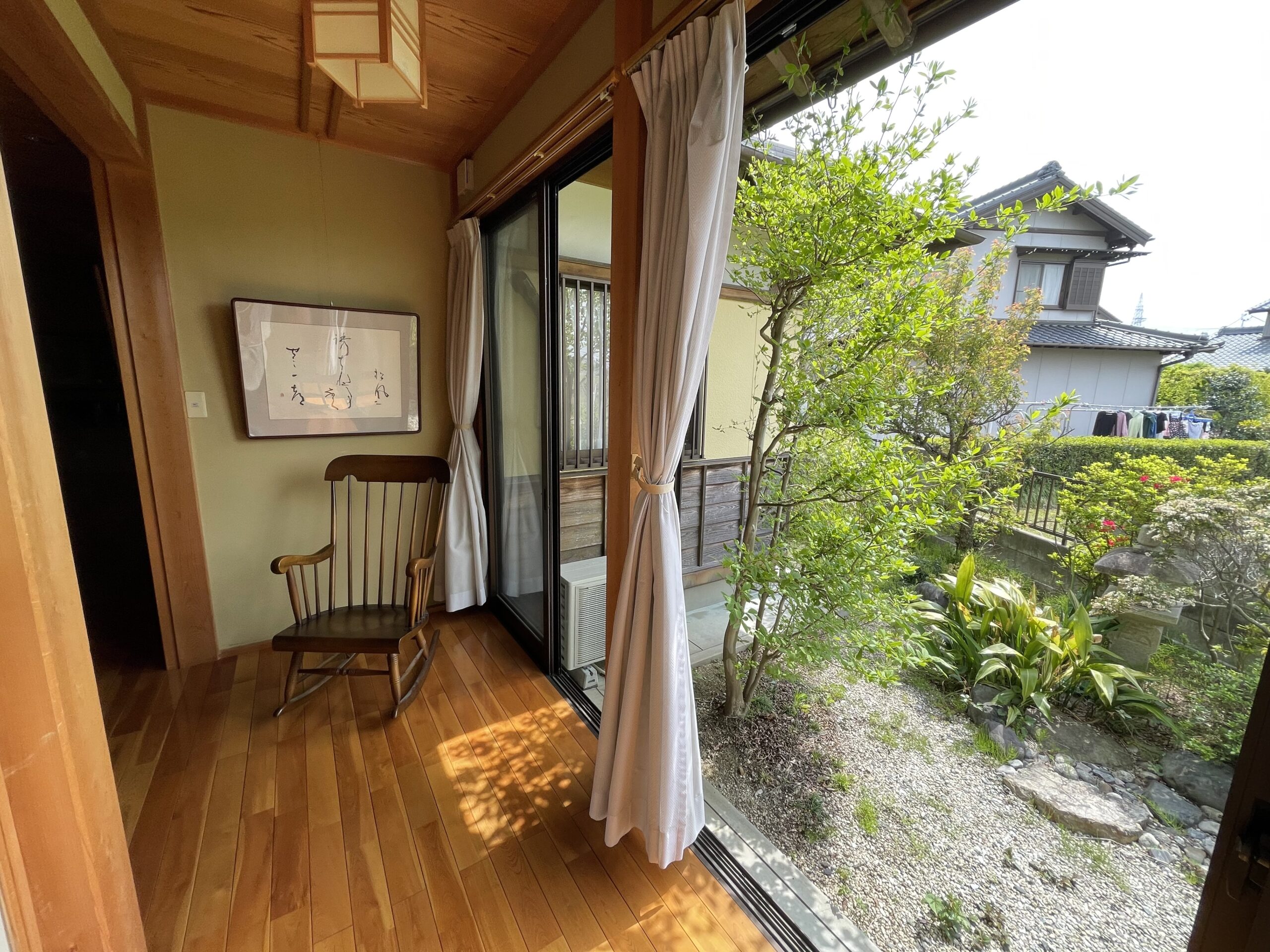 手入れの行き届いた美しい庭、陽射しが心地よい縁側、