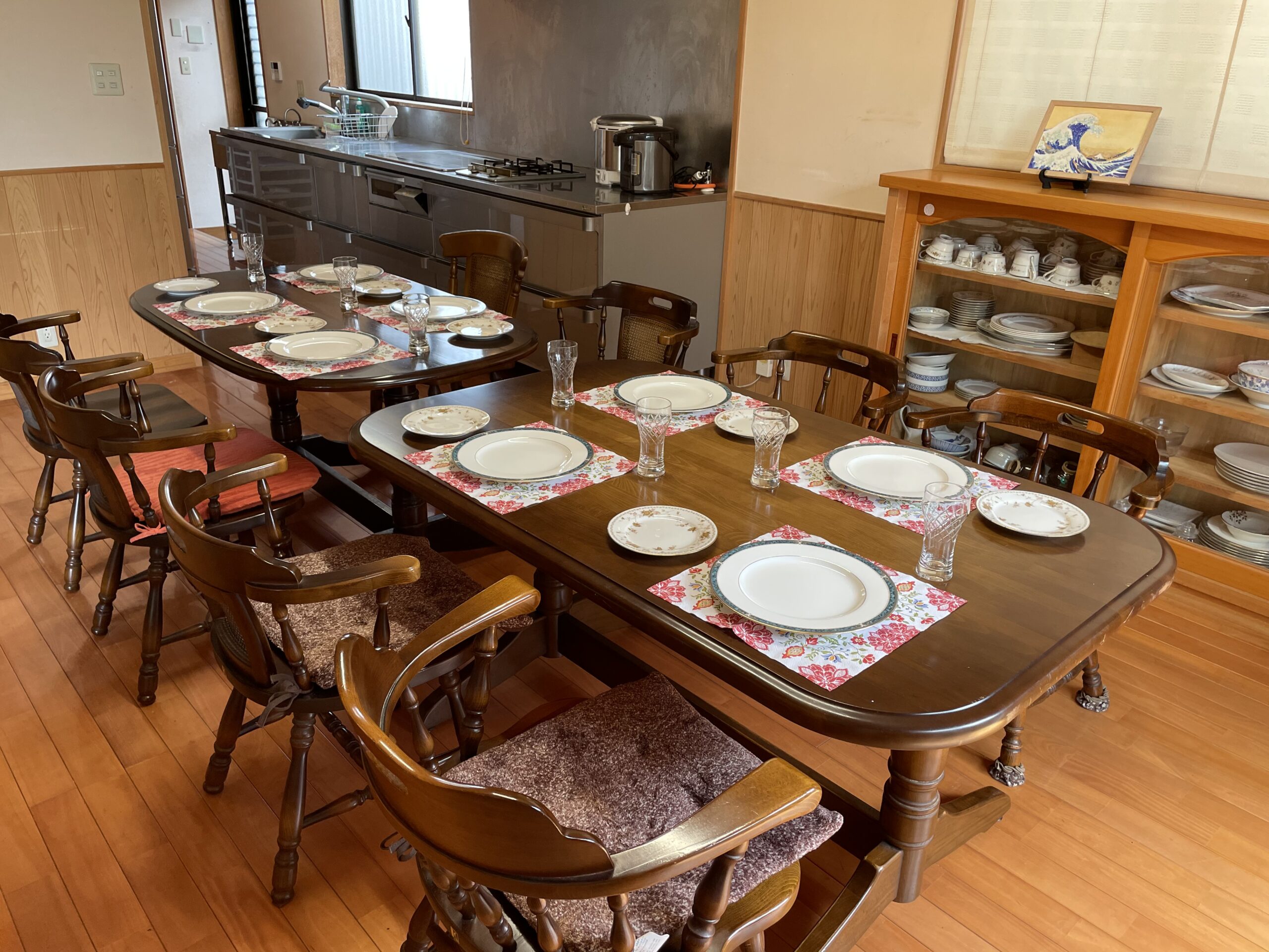 スーパーなどにも程近いので、みんなで買い出しをして楽しいホームパーティをしましょう。大きなキッチンにはガス&IHの両方搭載。高級ブランドの食器を取り揃えていますので、いつもの食事も美味しく感じること間違いなし。